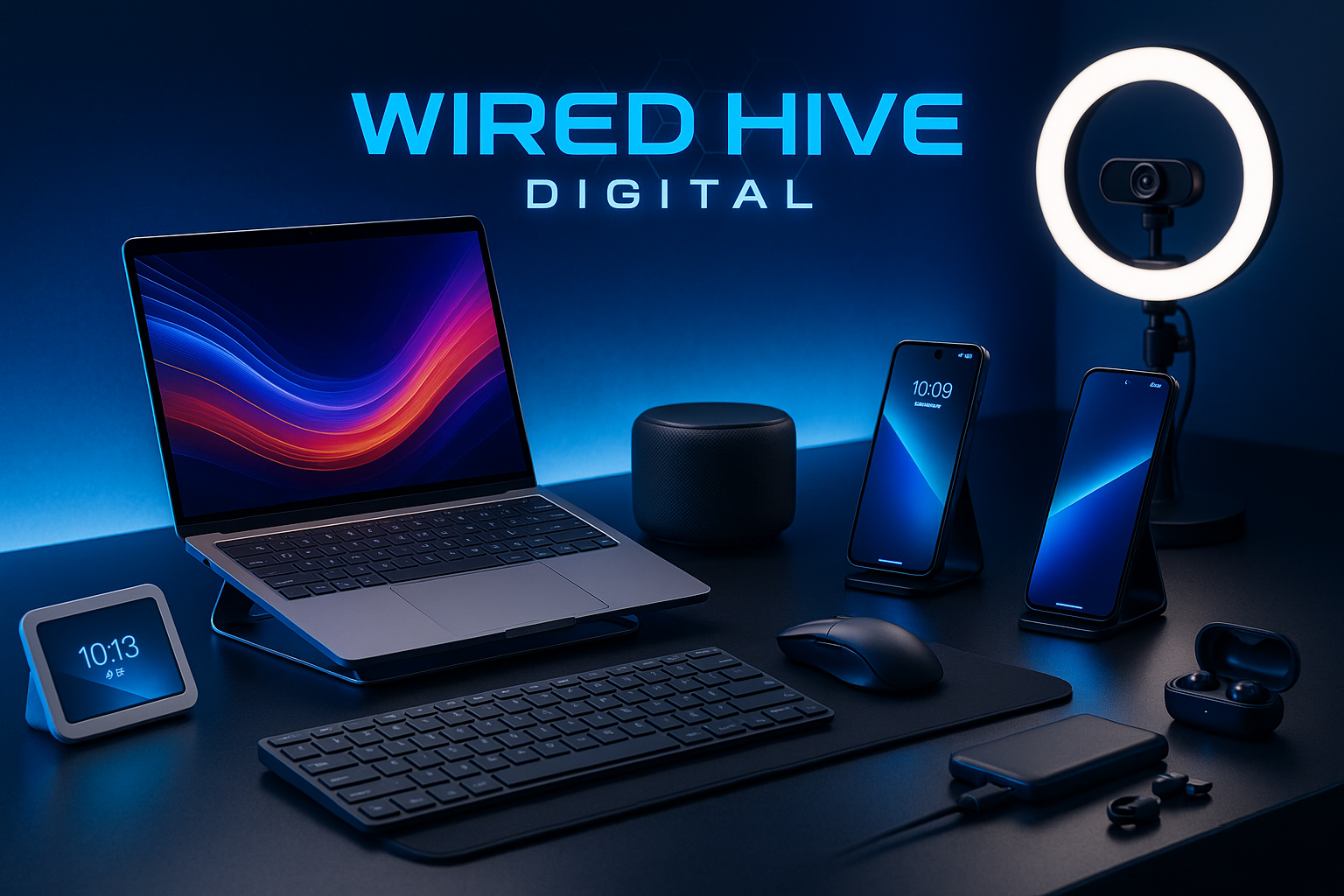 Wired Hive Digital offers a premium range of cutting-edge tech accessories, including power banks, smart devices, keyboards, speakers, earbuds, phone grips and holders, home electronics, webcams, ring lights, mouse pads, and laptop stands.